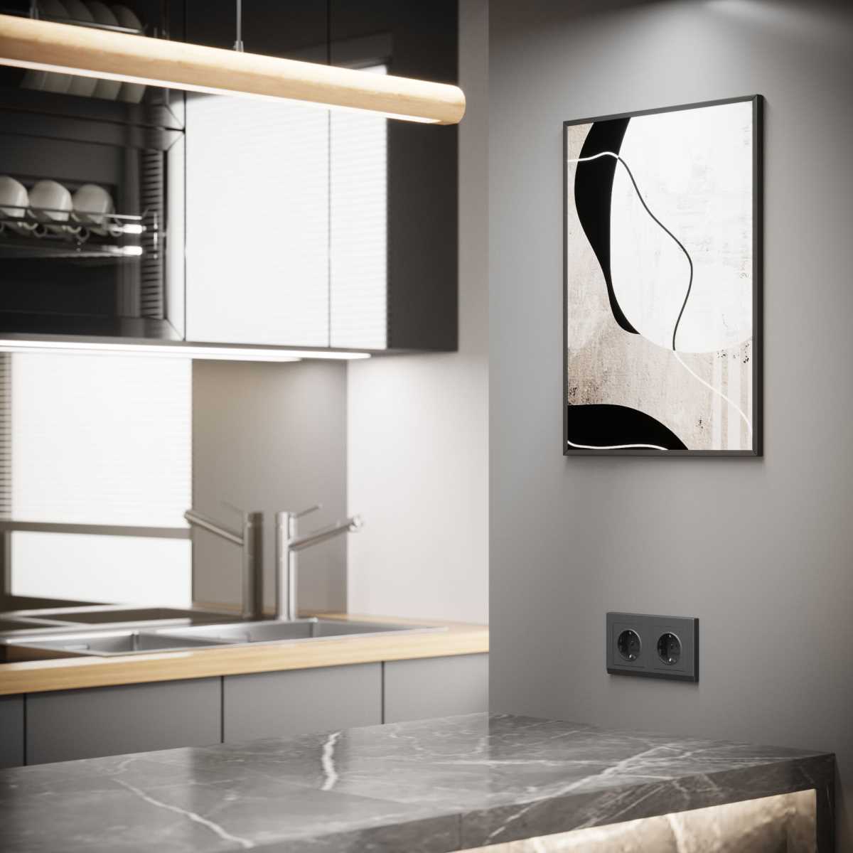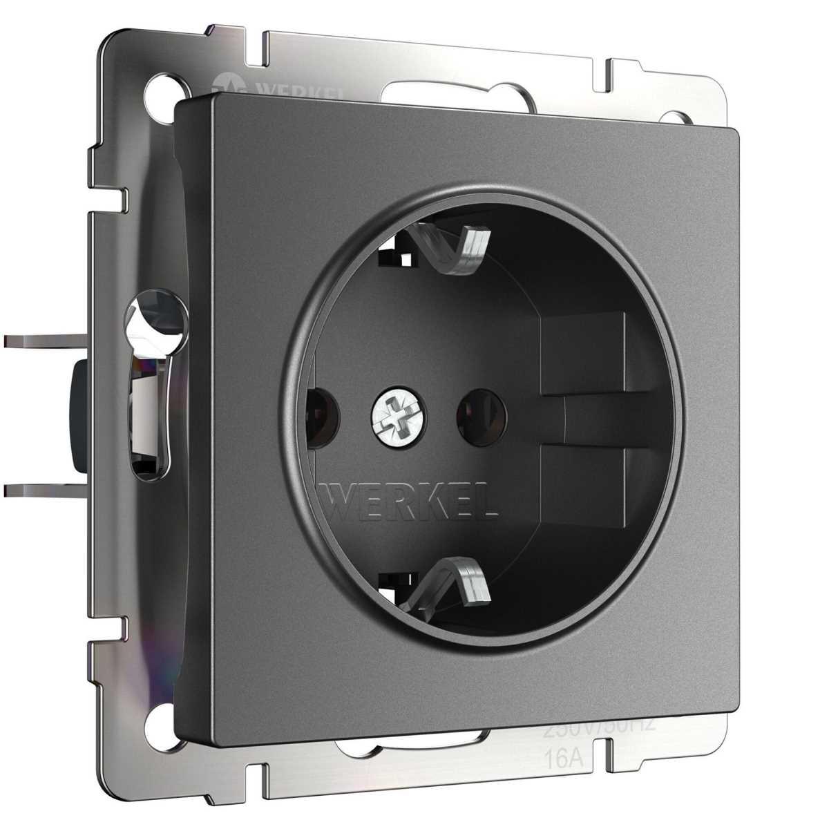 —Розетка с заземлением и шторками Werkel графит W1171164 4690389194412