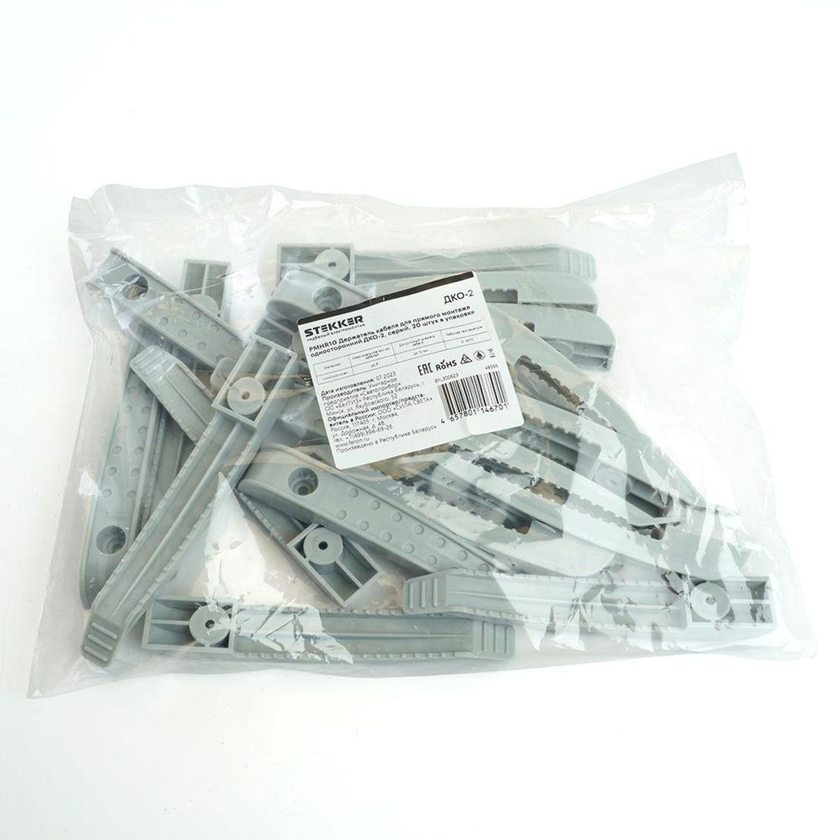 —Держатель кабеля для прямого монтажа односторонний ДКО-2 Stekker PMHR1G, серый (20шт в упак) 49566