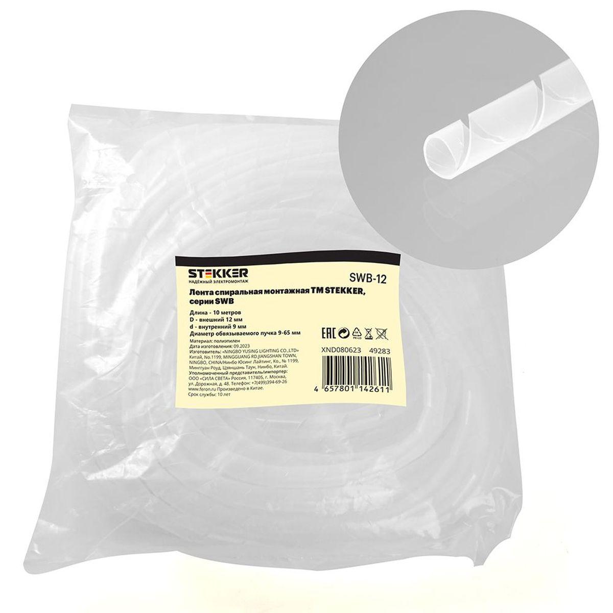 —Лента спиральная монтажная Stekker, диаметр пучка 9-65 мм,10 м/упак, белый, SWB-12 49283