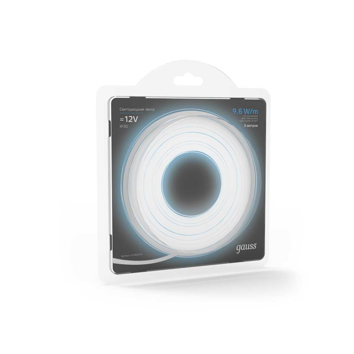 —Светодиодная лента Gauss 9,6W/m 120LED/m 2835SMD холодный белый 5M 312000310