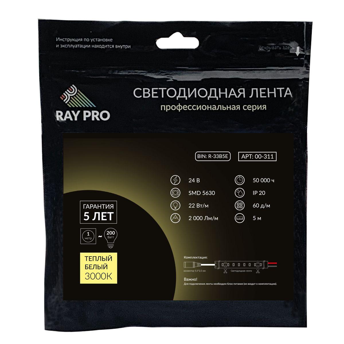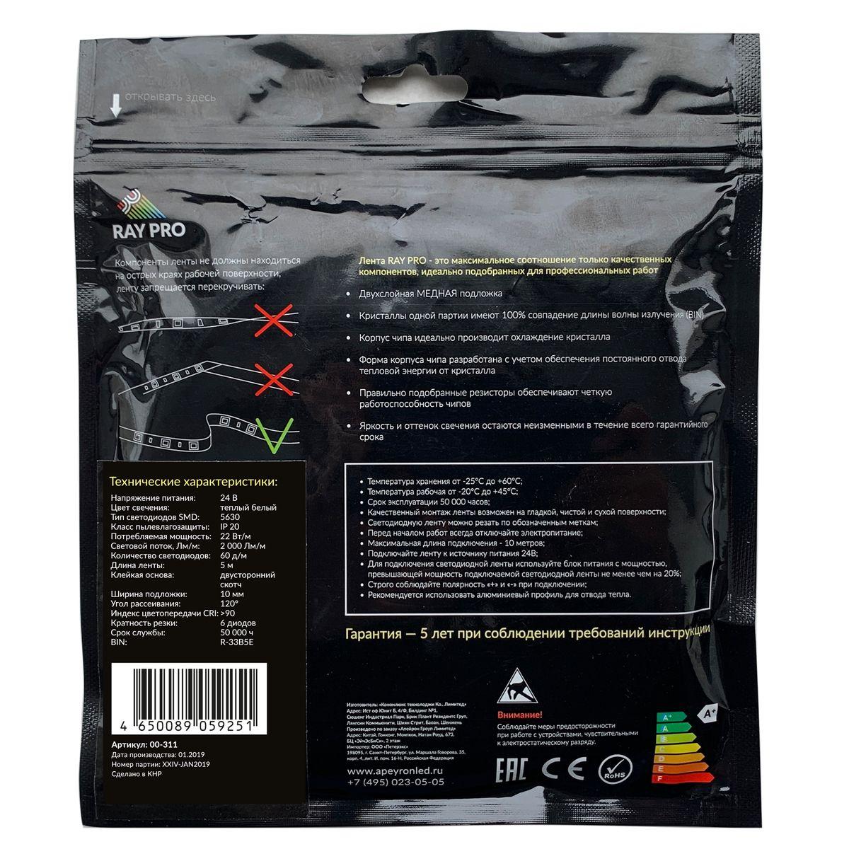 —Светодиодная лента Apeyron 22W/m 60LED/m 5630SMD теплый белый 5M 00-311