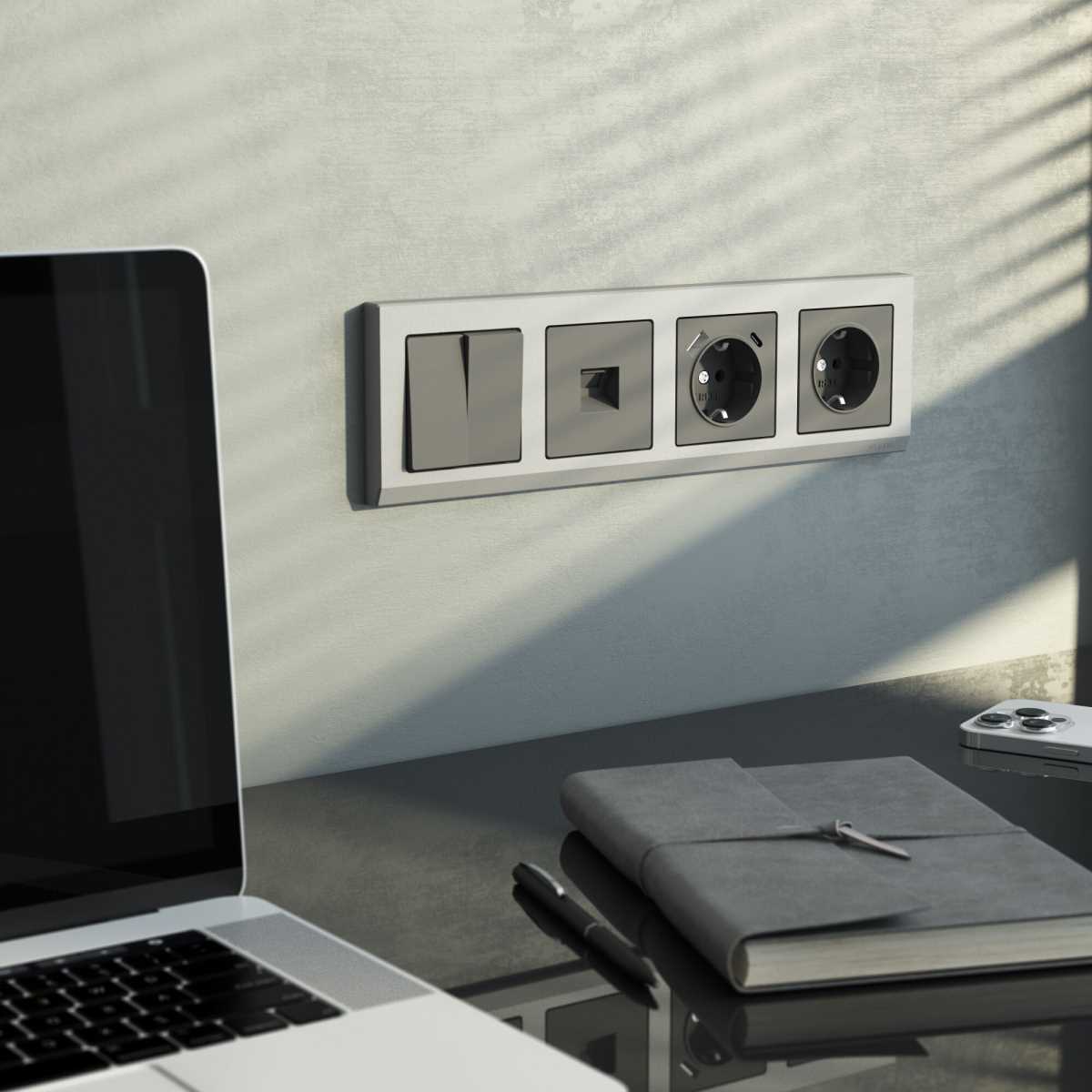 Перекрестный выключатель Werkel двухклавишный графит матовый W1123064 4690389196898