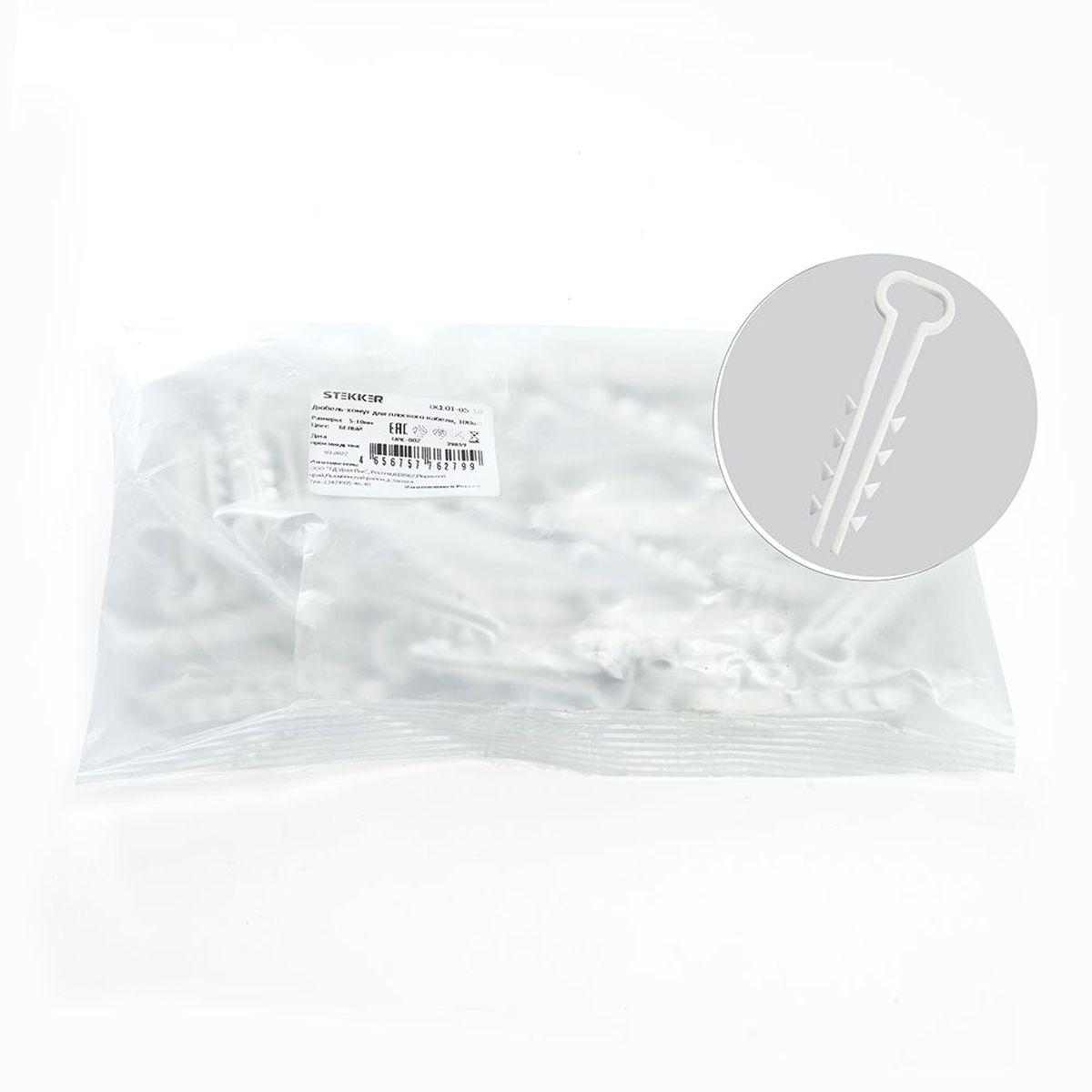 —Дюбель-хомут для плоского кабеля (5-10мм), Stekker DCL01-05-10, полипропилен, белый (100шт.) 39859