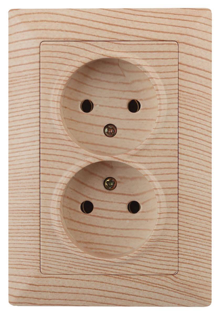 —Розетка двойная ЭРА Intro Solo 2х2P 16A 250V дерево 4-204-11 Б0043332