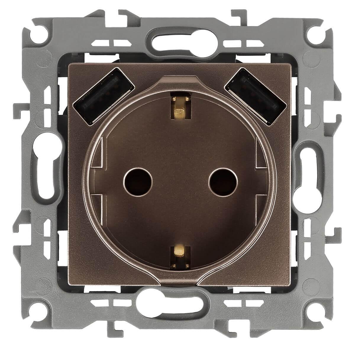 Розетка ЭРА Intro Solo Schuko P+E 16A 250V со шторками 2хUSB бронза 12-4109-13 Б0047847