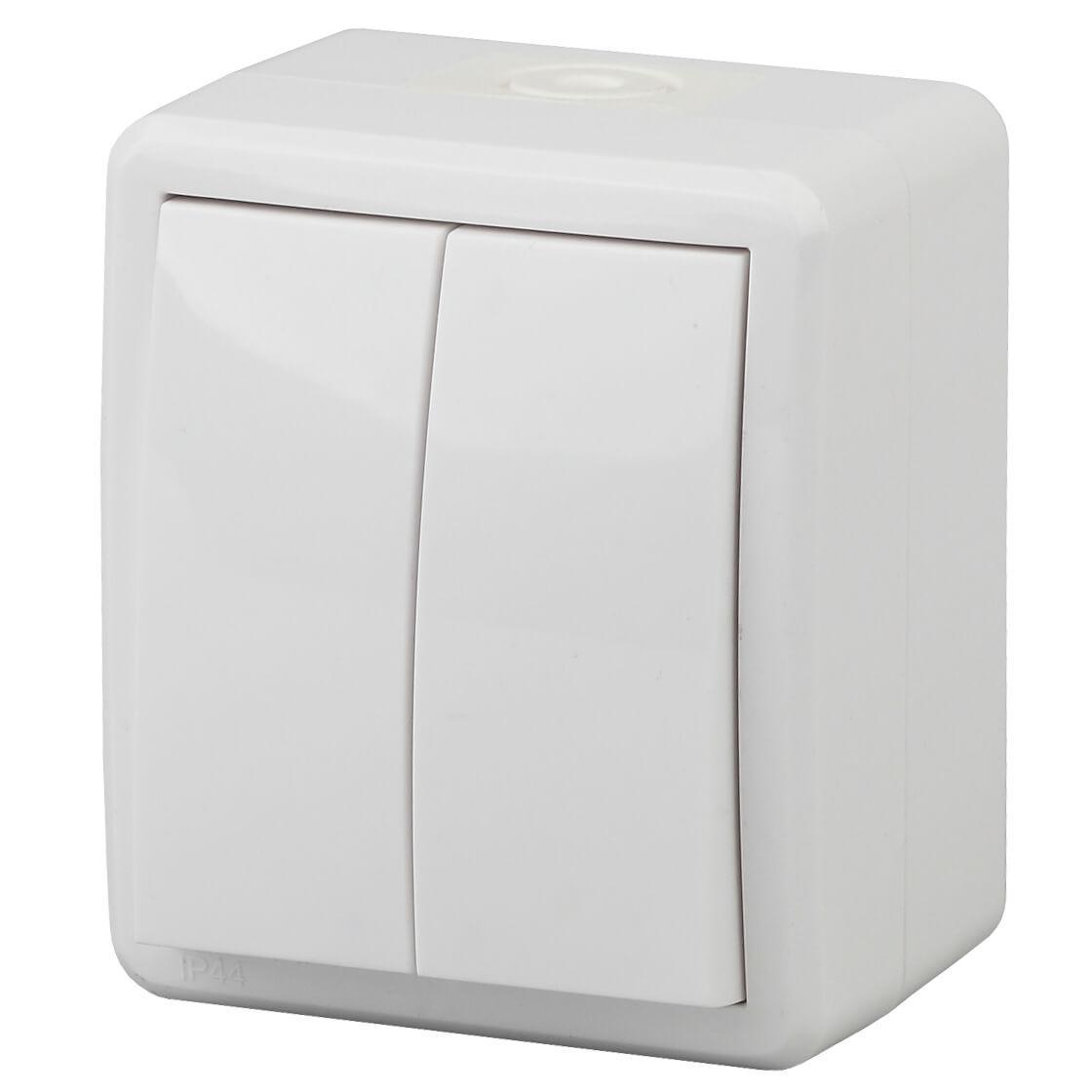 —Выключатель двухклавишный ЭРА Эксперт 10AX 250V IP54 Al Cu 11А-1404-01 Б0038817