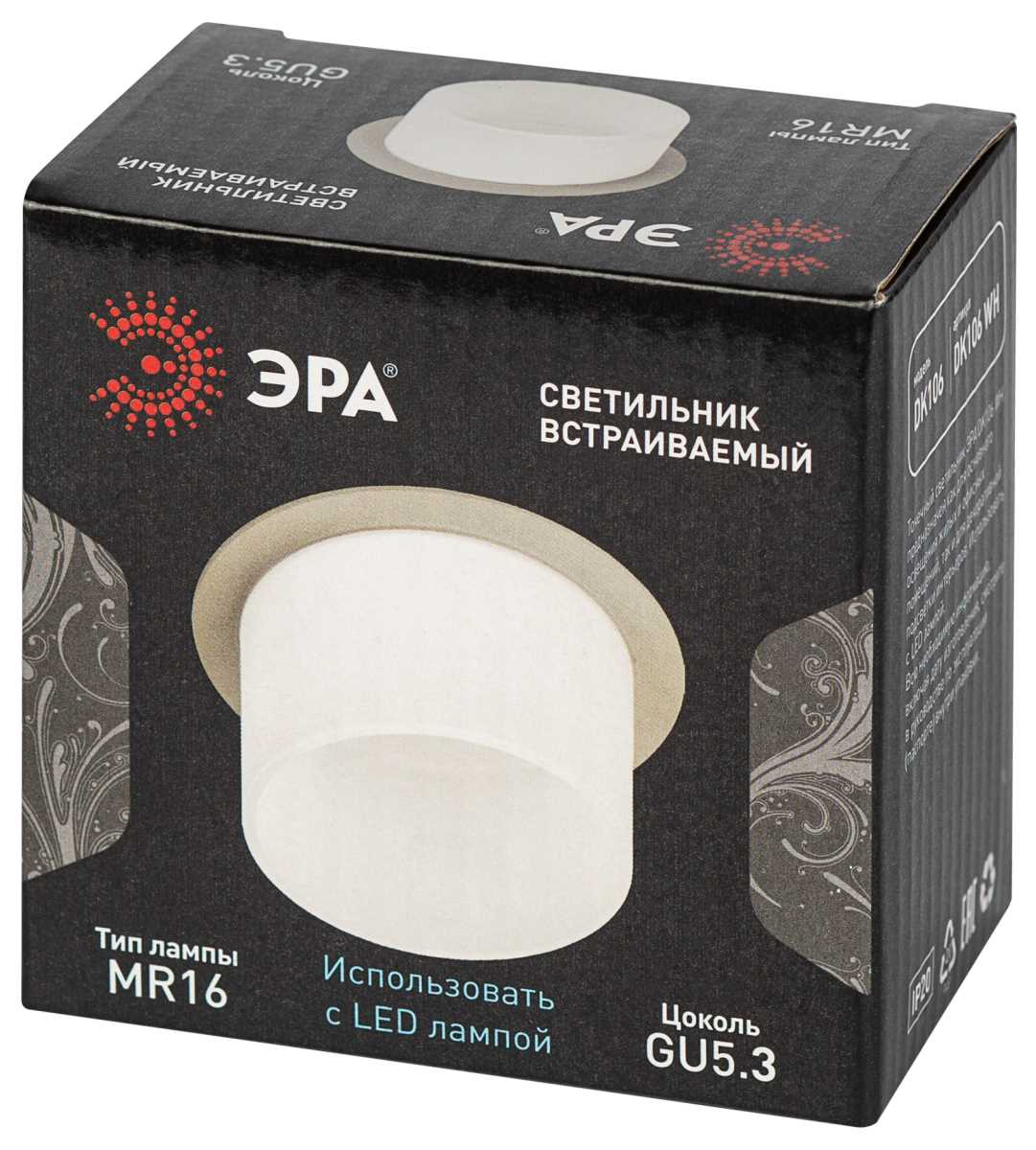 —Светильник встраиваемый декоративный ЭРА DK106 WH под лампу MR16 GU5.3 белый Б0058426