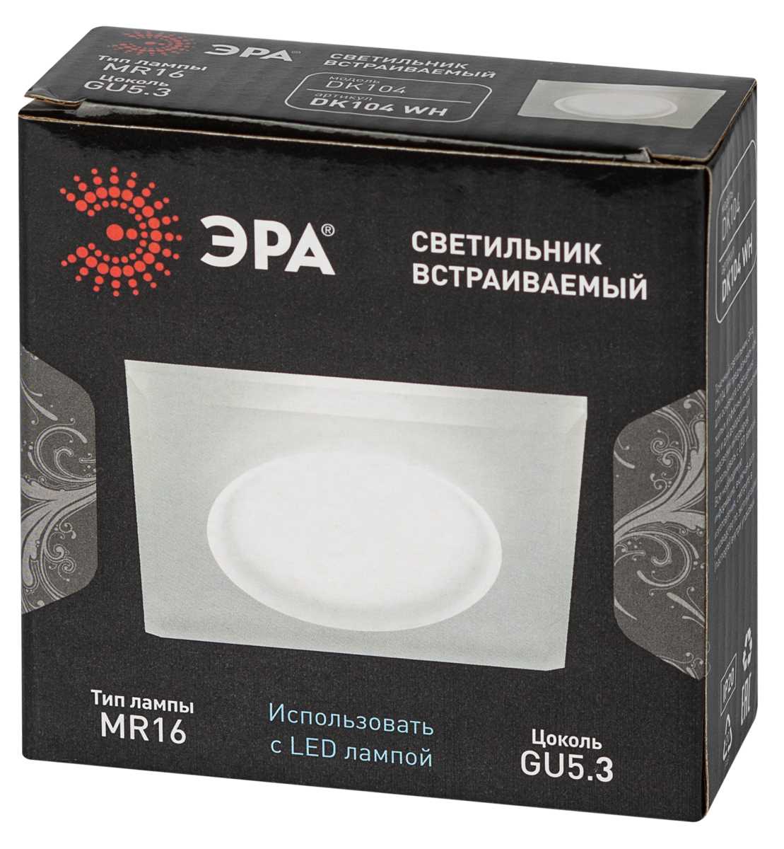 —Светильник встраиваемый декоративный ЭРА DK104 WH под лампу MR16 GU5.3 белый Б0058391