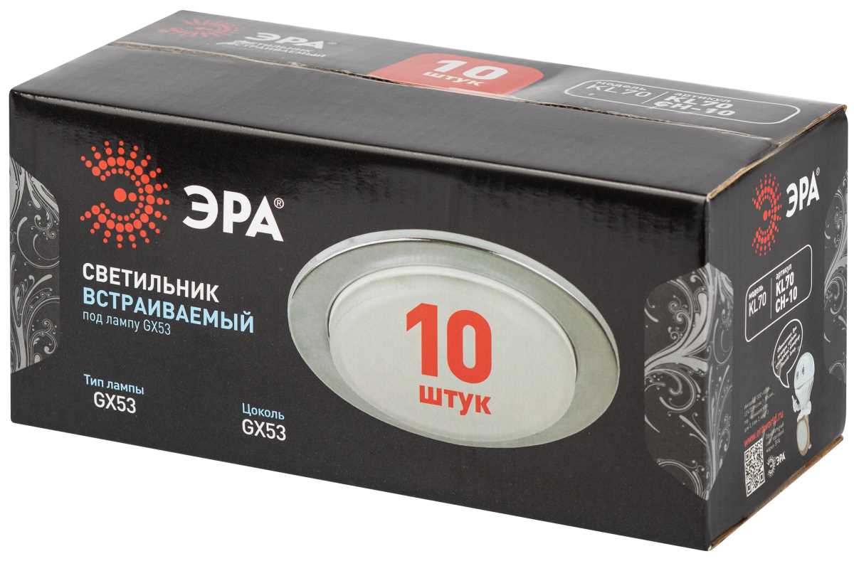 —Светильник встраиваемый ЭРА KL70 CH-10 под лампу GX53 хром набор 10 шт Б0057478