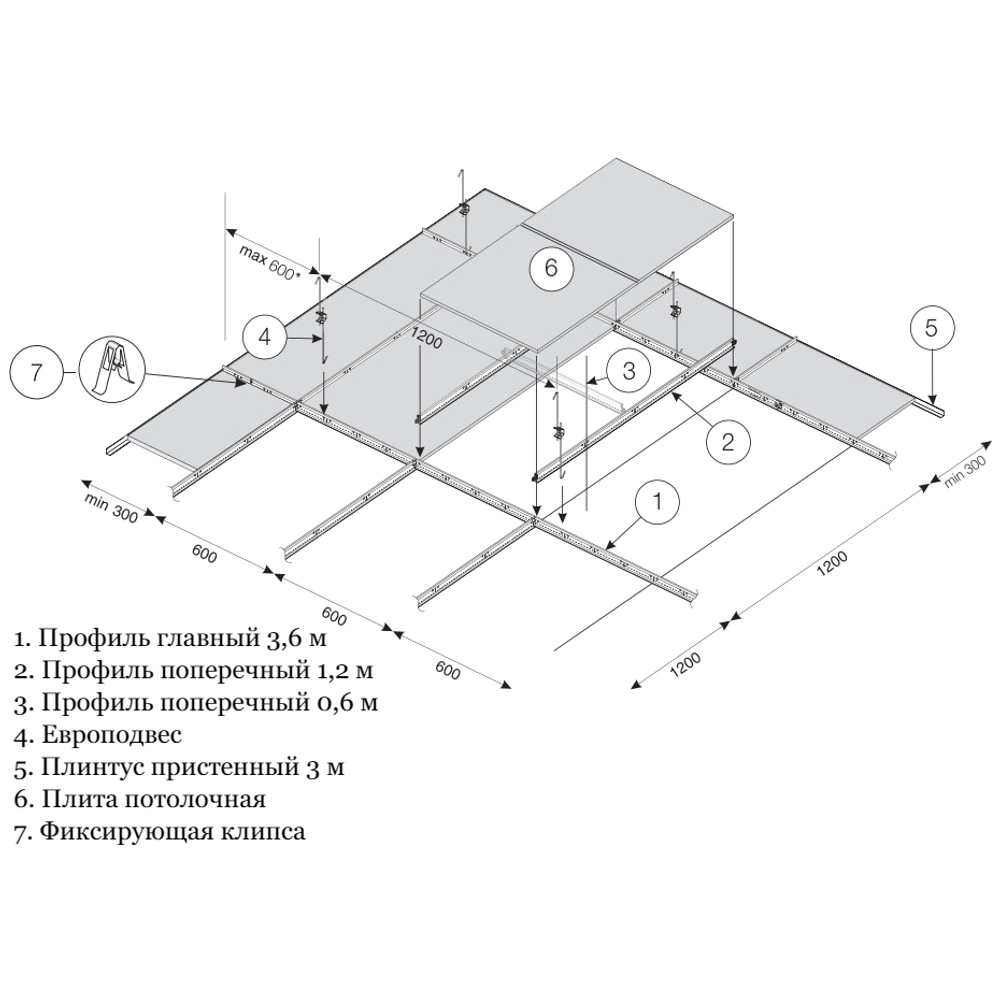 Плотно прижимает плиту к профилю и препятствует её движению во время обслуживания и очистки потолка, а также под действием воздушных потоков.